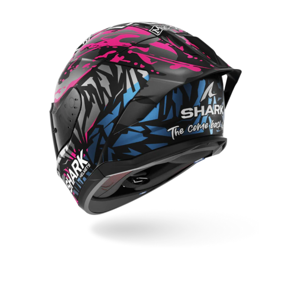 Son spoiler arrière, directement inspiré des casques de piste, lui confère une identité visuelle forte et une réelle stabilité aérodynamique là où elle est importante.