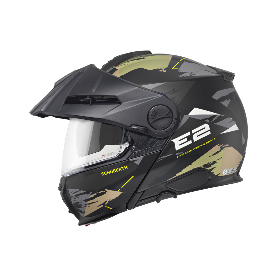 Le SCHUBERTH E2 est la seconde génération de casque aventure SCHUBERTH et le deuxième casque SCHUBERTH bénéficiant de la double homologation P/J et répondant à la nouvelle norme ECE 22.06. Le SCHUBERTH E2 est le mélange parfait entre le confort des casques modulaires de la célèbre série « C » et le look agressif d'un casque aventure. Le nouveau E2 intègre également les dernières normes SCHUBERTH en termes de sécurité, d'aérodynamisme et de performance aéroacoustiques.