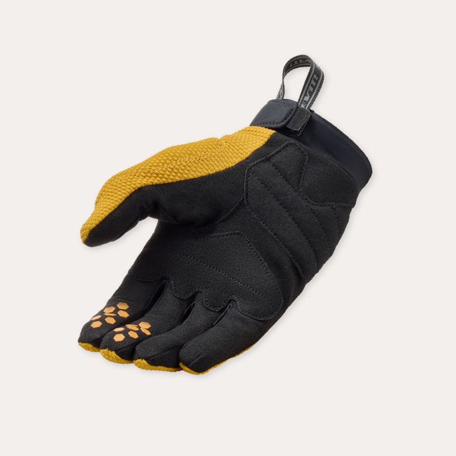 Om een broodnodige, optimale grip aan het stuur te bieden is de handpalm uitgevoerd in Clarino-stof.
